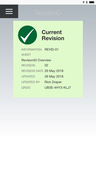 No account/login is needed to check the revision of a document. Simply scan the QR2id Code with a smart phone or tablet, or enter the Serial Number at QR2id.com to check for revisions/amendments.